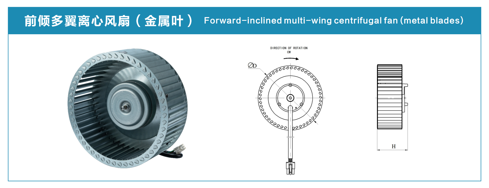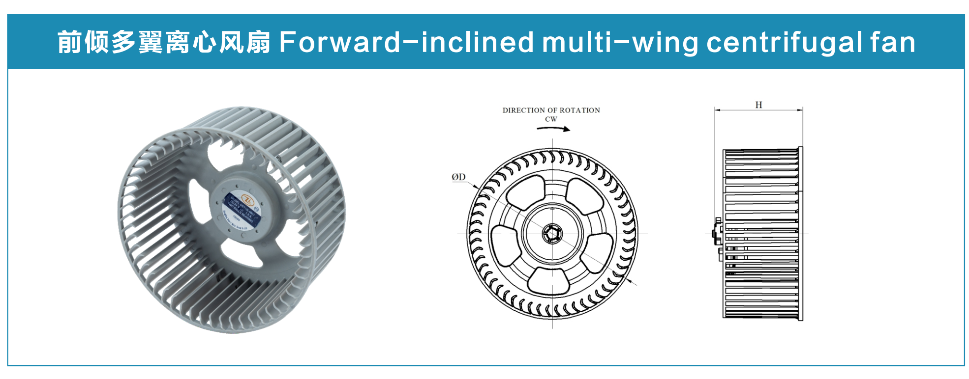 Forward-inclined multi-wing centrifugal fans use dense forward-inclined blades to deliver large airflow at medium and low static pressure. The metal blade version has excellent high-temperature resistance, suitable for high-temperature working conditions.