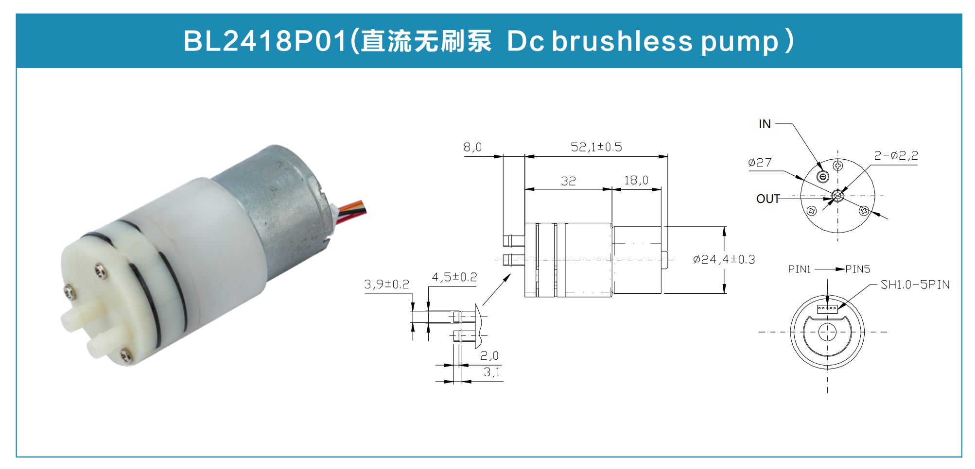 | 2418 (BLDC Pump ) | 2418 | Water flow rate ≥150ml/min | DC:12V | 2W | / |
